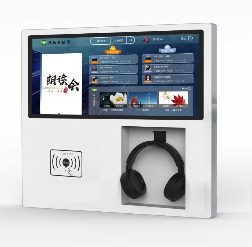 【功能】内置资源无广告,二维码扫描借阅,定时开关机、阅读软件锁屏、图书搜索、发布通知机顶播出